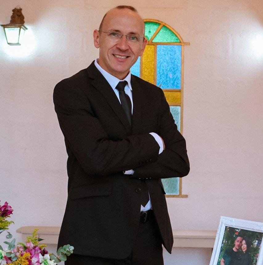 Paixão pela família é o meu grande diferencial. Casado há 30 anos e com mais de 21 de anos de experiência em Celebração de Casamentos, sei o quão importante é para o casal a cerimônia de casamento. Administrador de empresas, bacharel em teologia, conselheiro familiar e celebrante de cerimônias de casamentos, desejo fazer de sua cerimônia um momento inesquecível, mágico, inspirados e cheio de romantismo.